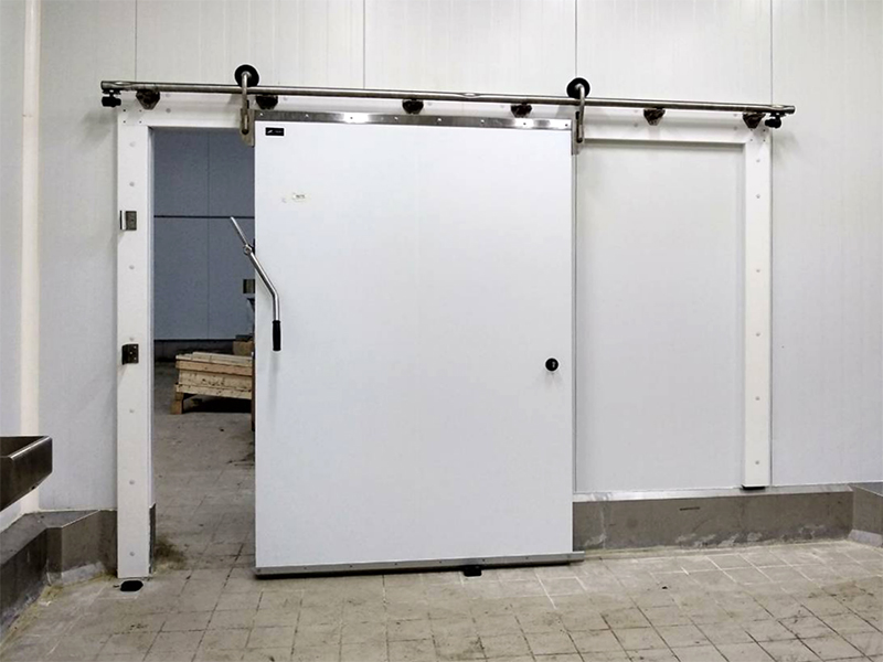 Откатная холодильная дверь промышленной серии ОД (пром) Полотно двери - оцинкованная окращенная сталь 0,6 мм Рама двери - алюминиевый профиль особой конструкции с анодированным покрытием |