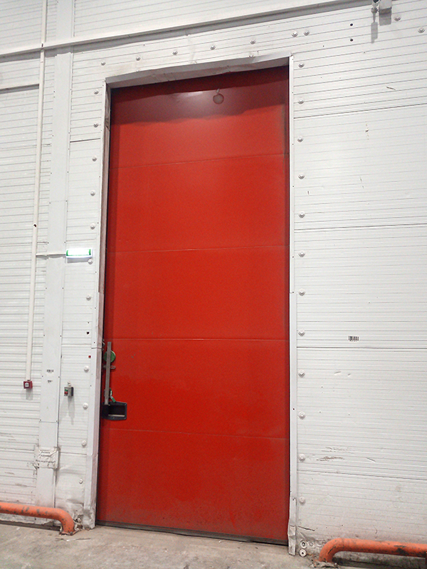 Откатные противопожарные холодильные двери с пределом огнестойкости ОД (EI30) и ОД (EI 60) Полотно двери - оцинкованная окращенная сталь 0,6 мм Рама двери - холоднокатаная сталь 2,0 мм с покрытием порошковой краской Наполнитель – огнеупорная пена |