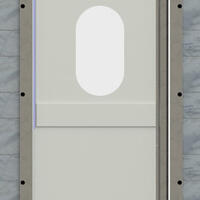 Изготовлено из ударопрочного монолитного поликарбоната толщиной 15 мм. Уникальный конструктив обеспечивает жесткую фиксацию окна в единой плоскости с полотном, не требуя дополнительных крепежных элементов. Исключается образование лишних зазоров и пазов, значительно повышая гигиеничность.