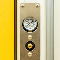 Система контролирует давление внутри двухкамерного резинового уплотнителя. Воздух накачивается через металлический ниппель до необходимого давления, измеряемого встроенным манометром.